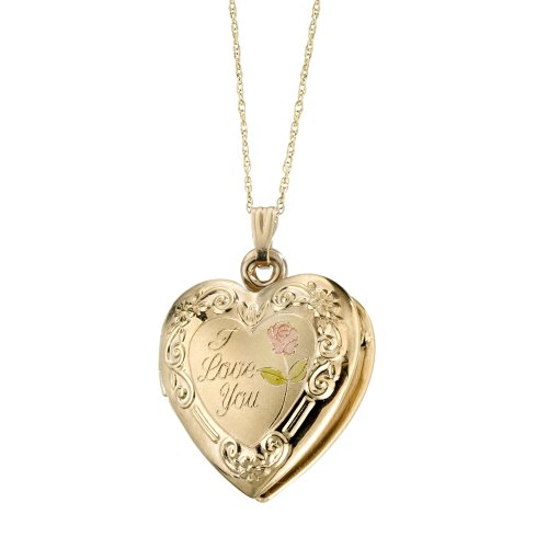 A wonderful gift for the one you love, the 14k Yellow Gold "I Love You" Heart Locket with Pink Rose Pendant offers a classic and elegant design. Resting from an 18-inch rope chain is a classic yellow-gold heart locket with ornate swirls that frame the shape. The inside of the heart contains beautiful script that reads, "I Love You," accented with a pink rose. Crafted with the quality and sophistication seen in all Duragold jewelry, this timeless pendant will be enjoyed year-after-year.Duragold i...Read More at Amazon.com